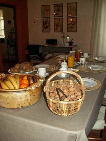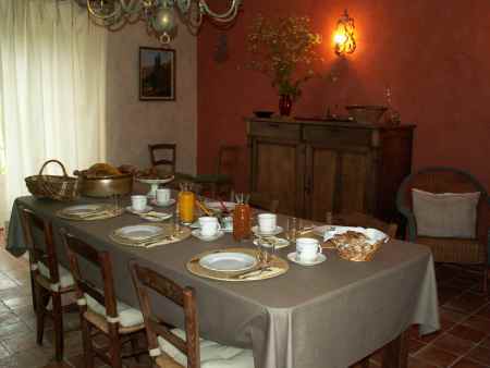 salle à manger devant l’imposante cheminée ou sur la terrasse les